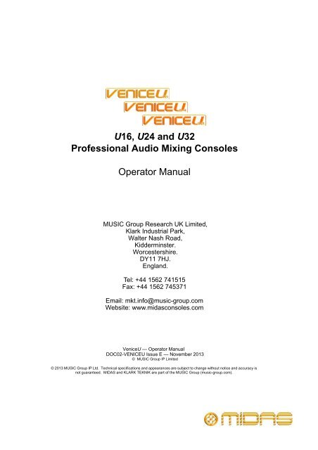 Manual Midas Veniceu U16 Page 2 Of 122 English